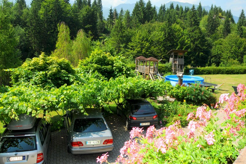 Máme velkou zahradu z hřištěm, kde se budou nejvíce zabávat vaše děti, vy si můžete vychutnávat odpočinek v chladném stínu seníku. Při seníku je taky gril na dřevo, na kterem vám můžeme připravit chutné pokrmy, nebo si sami zpestřete dovolenou s piknikem v zahradě.